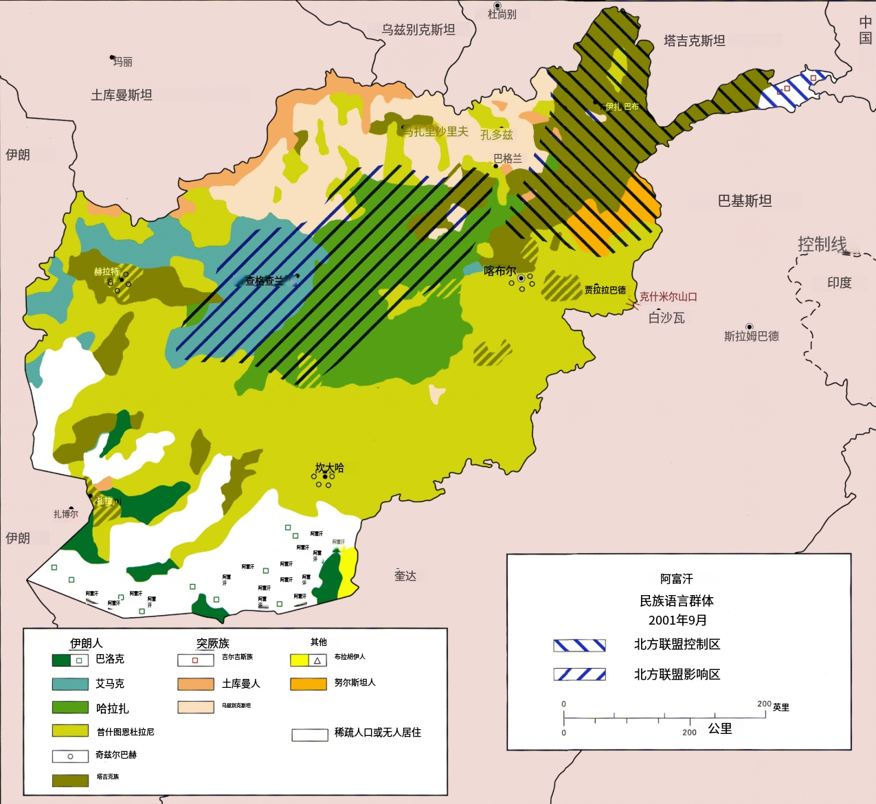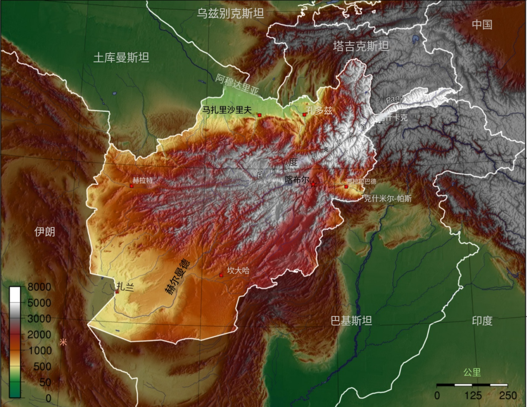 既然连成一片,阿富汗的地理关系跟中亚五国自然是很密切的,从古代到今天的人口来往也多。但是限于地形,进出阿富汗不易。
